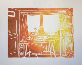 experimenten door de jaren heen. cyanotype op papier en canvas, lino prints, ecoline en regen, potlood en muurtexturen